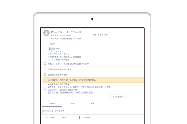 導入後はスタッフの業務負担を大きく削減でき、患者さんやコミュニケーションをとる時間が増えました。チーム全体や個人の受け持ち状況がすぐに理解できるので、対策を打ちやすくなりました。